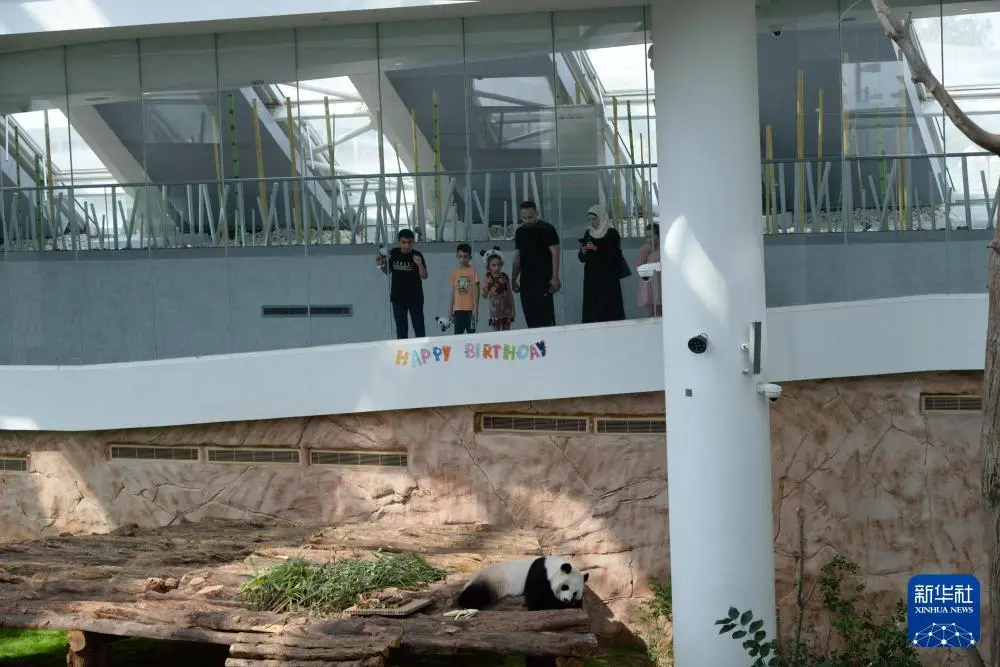2023年7月26日,人们在卡塔尔多哈的豪尔熊猫馆参观。新华社记者 汪强 摄