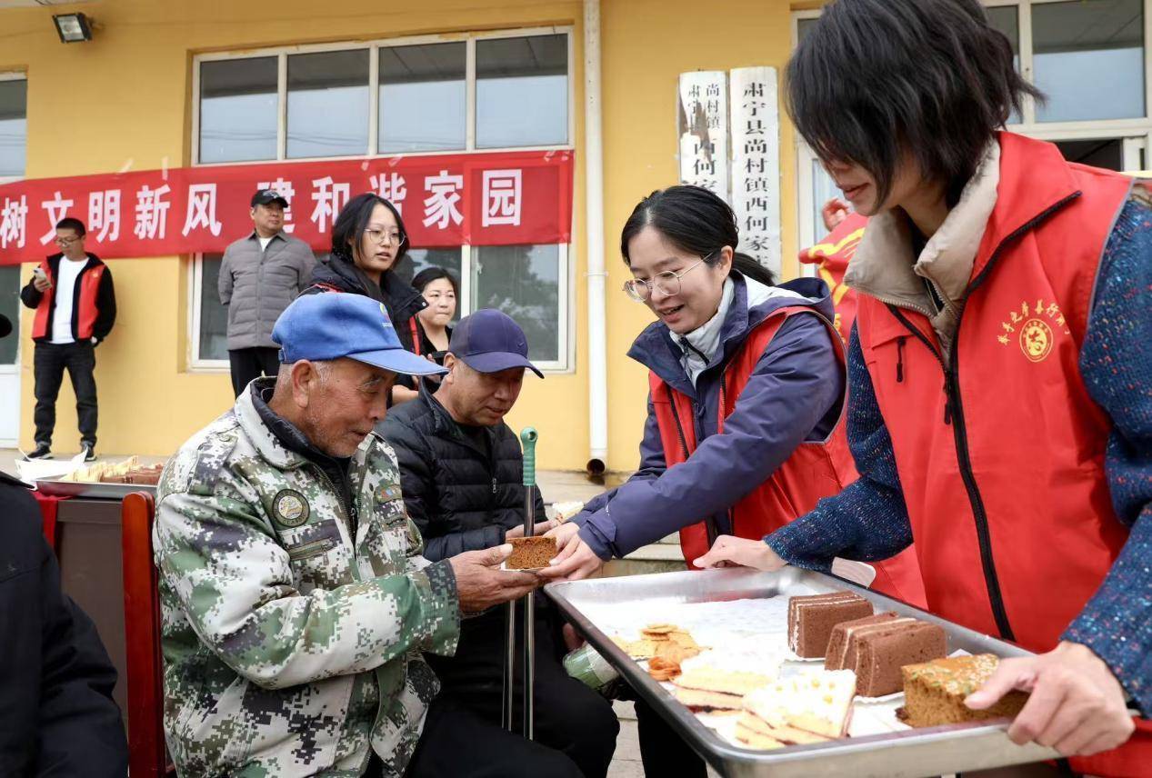 志愿者为老人送上重阳糕点。刘巨雷摄