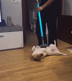 主人一直没法打扫的原因:有只很喜欢被吸尘器撸撸的小狗