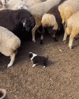 还是个宝宝的牧羊犬~小心别被羊给揍了